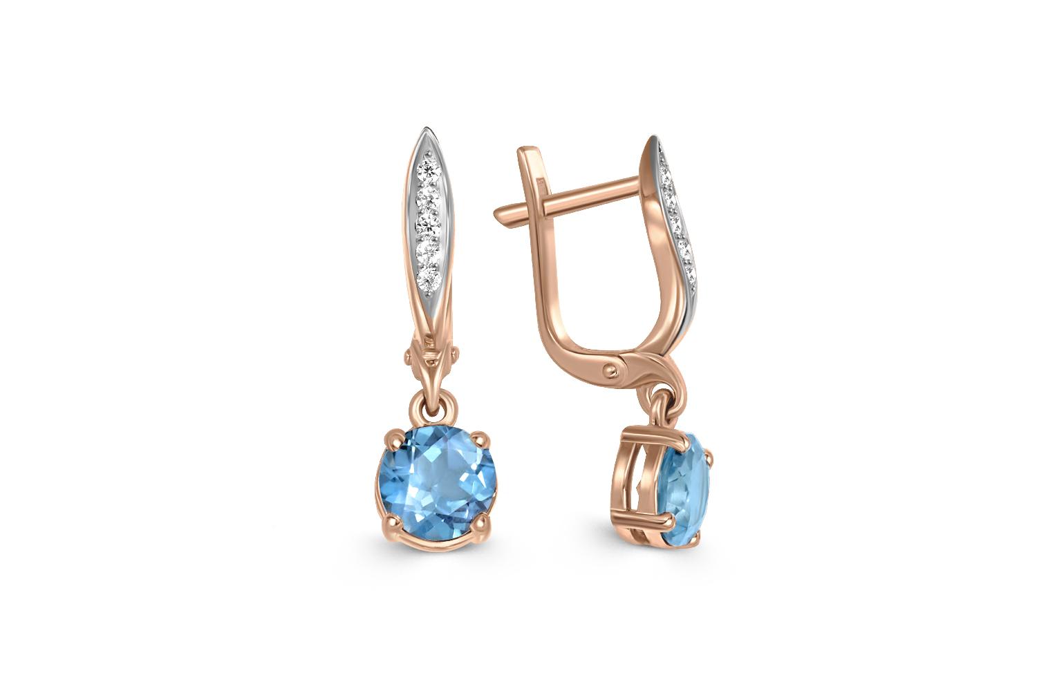 Мастера компании NEWGOLD, приложив всё свое мастерство и искусство, создали для Вас на нашем собственном производстве Серьги из красного золота с 2 топазами swiss и 10 фианитами.