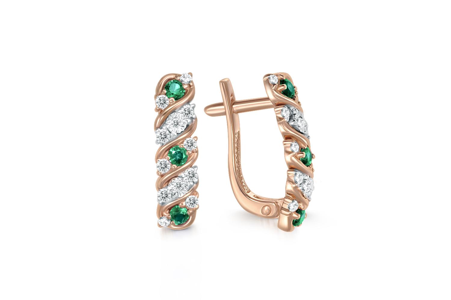 Мастера компании NEWGOLD, приложив всё свое мастерство и искусство, создали для Вас на нашем собственном производстве Серьги из красного золота с 6 изумрудами и 24 бриллиантами.