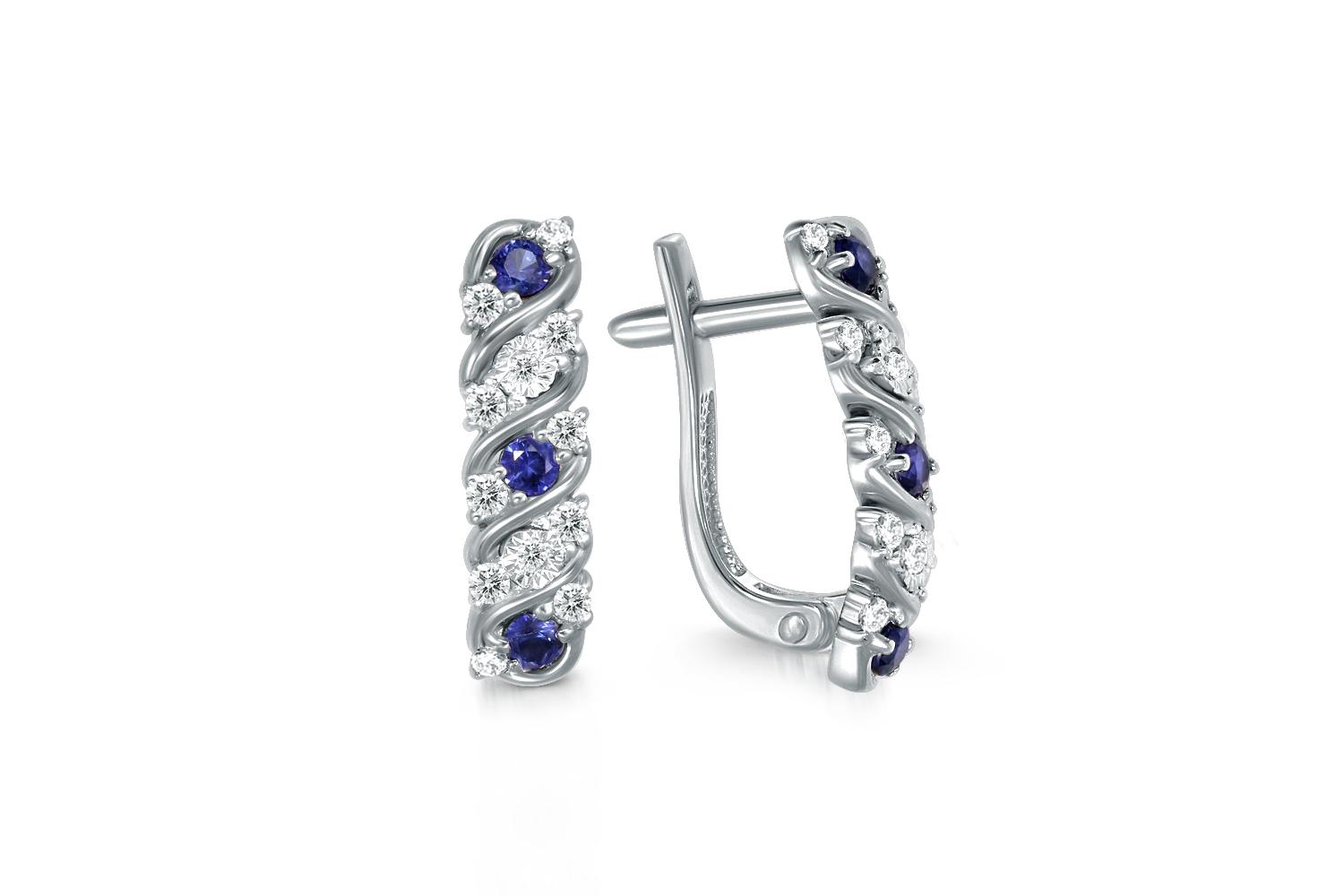 Мастера компании NEWGOLD, приложив всё свое мастерство и искусство, создали для Вас на нашем собственном производстве Серьги из белого золота с 6 сапфирами и 24 бриллиантами.