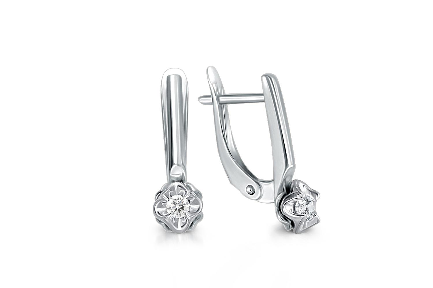 Мастера компании NEWGOLD, приложив всё свое мастерство и искусство, создали для Вас на нашем собственном производстве Серьги Цветы из белого золота с 2 бриллиантами.