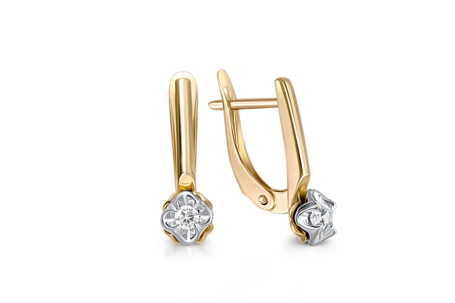 Мастера компании NEWGOLD, приложив всё свое мастерство и искусство, создали для Вас на нашем собственном производстве Серьги Цветы из жёлтого золота с 2 бриллиантами.