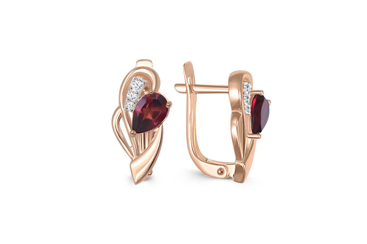 Мастера компании NEWGOLD, приложив всё свое мастерство и искусство, создали для Вас на нашем собственном производстве Серьги из красного золота с 2 гранатами и 6 фианитами.
