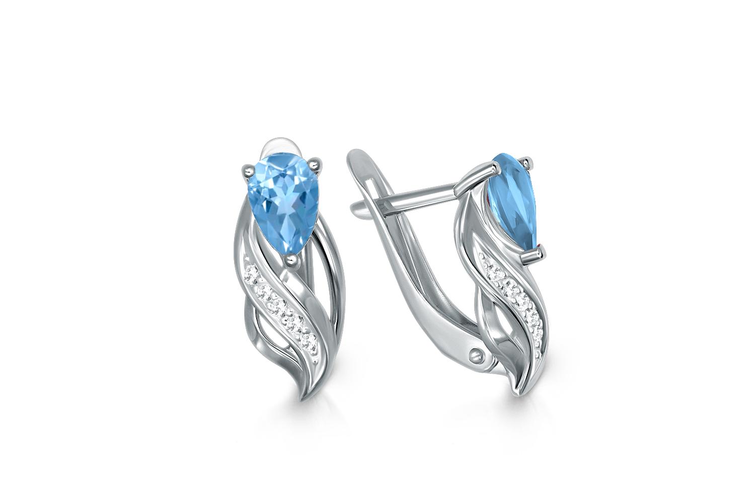Мастера компании NEWGOLD, приложив всё свое мастерство и искусство, создали для Вас на нашем собственном производстве Серьги из белого золота с 2 топазами swiss и 10 фианитами.