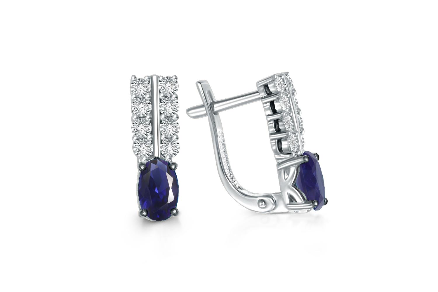Корунд сапфир синт, количество 2 шт., огранка овал, размер 6ˣ4 ; Бриллиант, количество 16 шт., огранка Кр-17, размер 1 мм, цвет 2, чистота 2