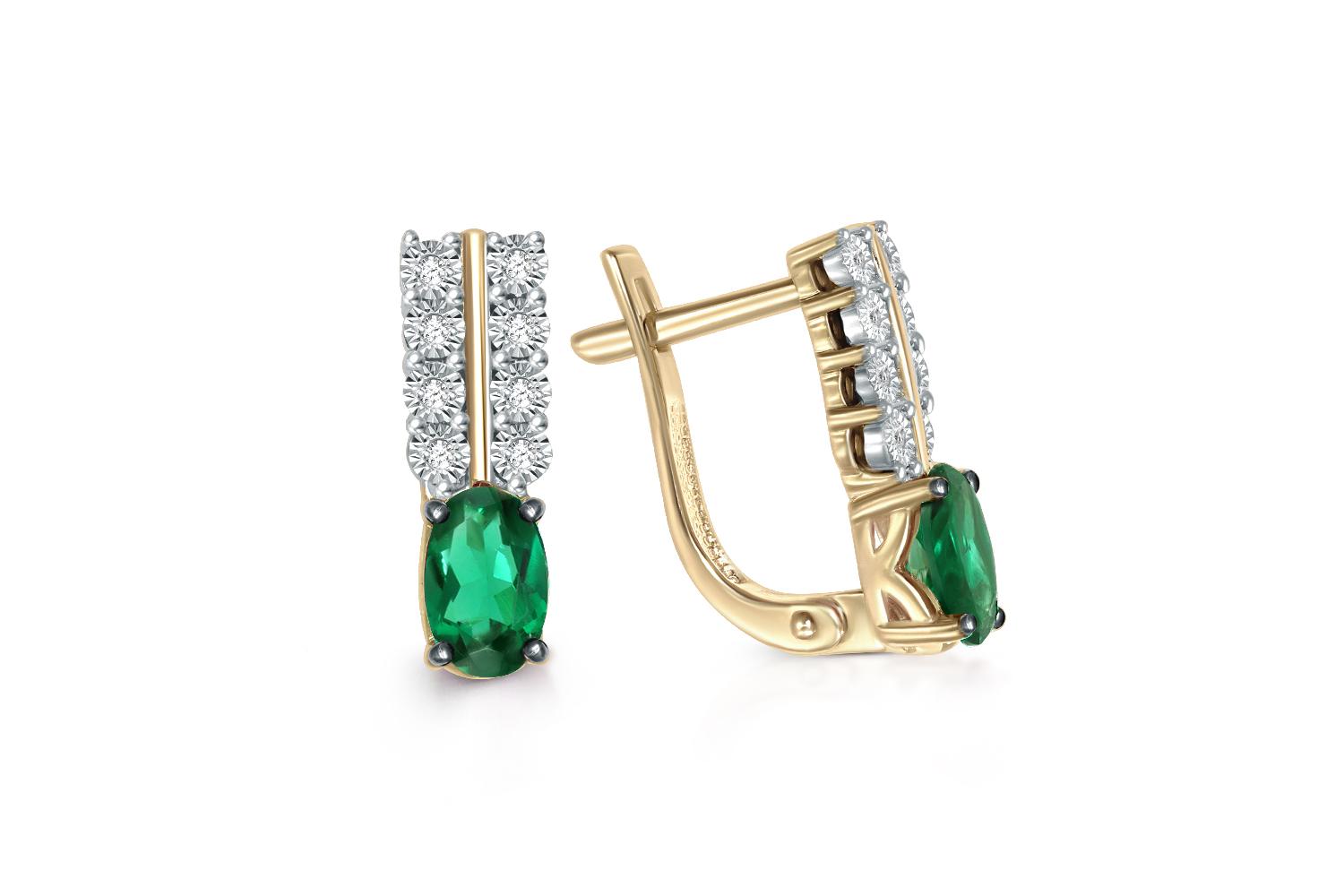 Мастера компании NEWGOLD, приложив всё свое мастерство и искусство, создали для Вас на нашем собственном производстве Серьги из жёлтого золота с 2 изумрудами и 16 бриллиантами.