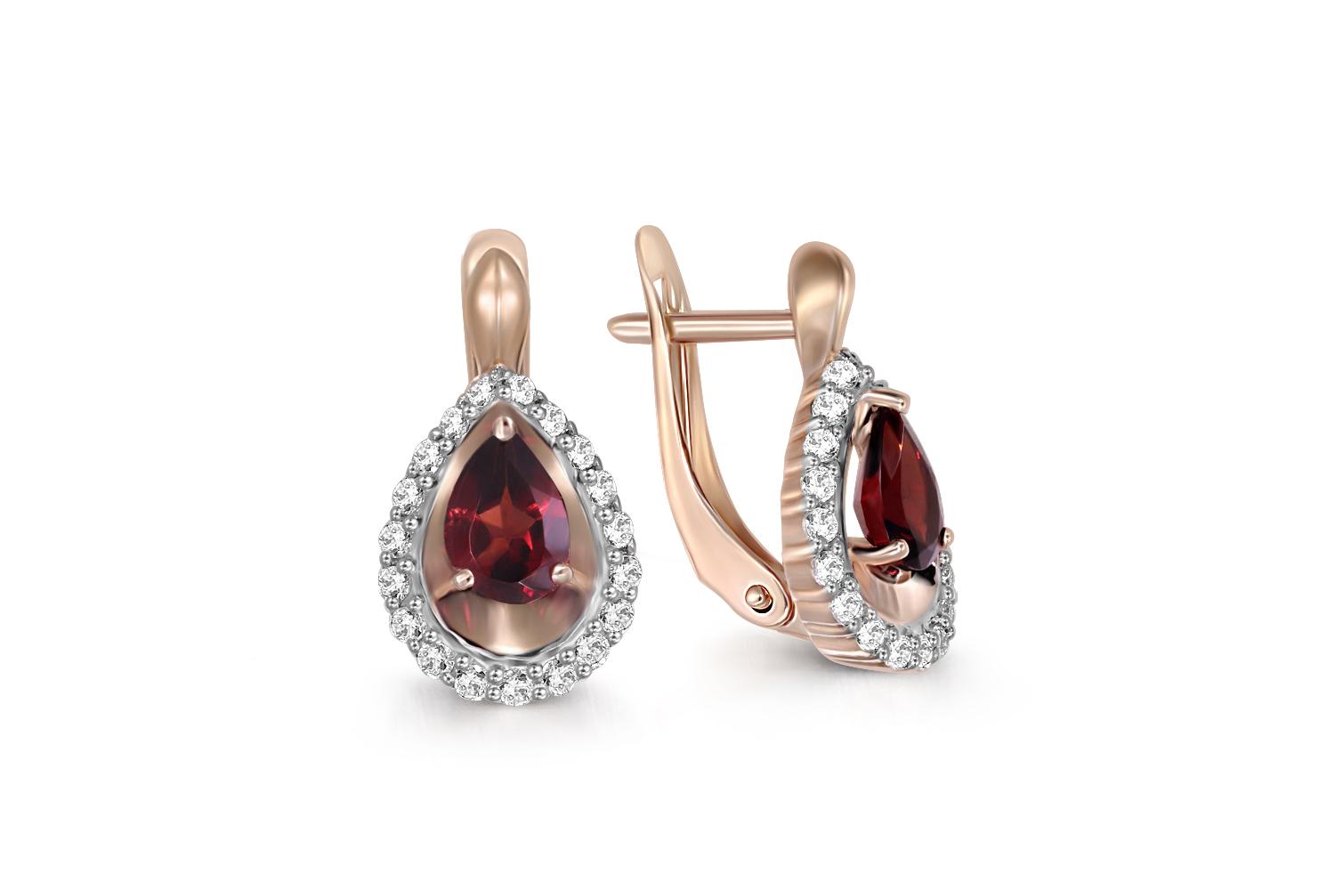 Мастера компании NEWGOLD, приложив всё свое мастерство и искусство, создали для Вас на нашем собственном производстве Серьги из красного золота с 2 гранатами и 38 фианитами.