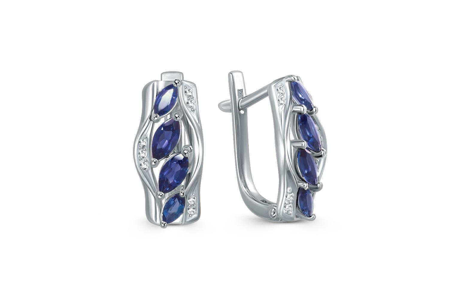 Мастера компании NEWGOLD, приложив всё свое мастерство и искусство, создали для Вас на нашем собственном производстве Серьги из белого золота с 8 корундами и 14 бриллиантами.