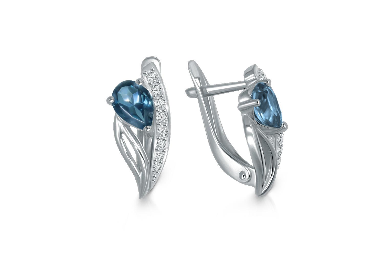 Мастера компании NEWGOLD, приложив всё свое мастерство и искусство, создали для Вас на нашем собственном производстве Серьги из белого золота с 2 топазами лондон и 16 фианитами.