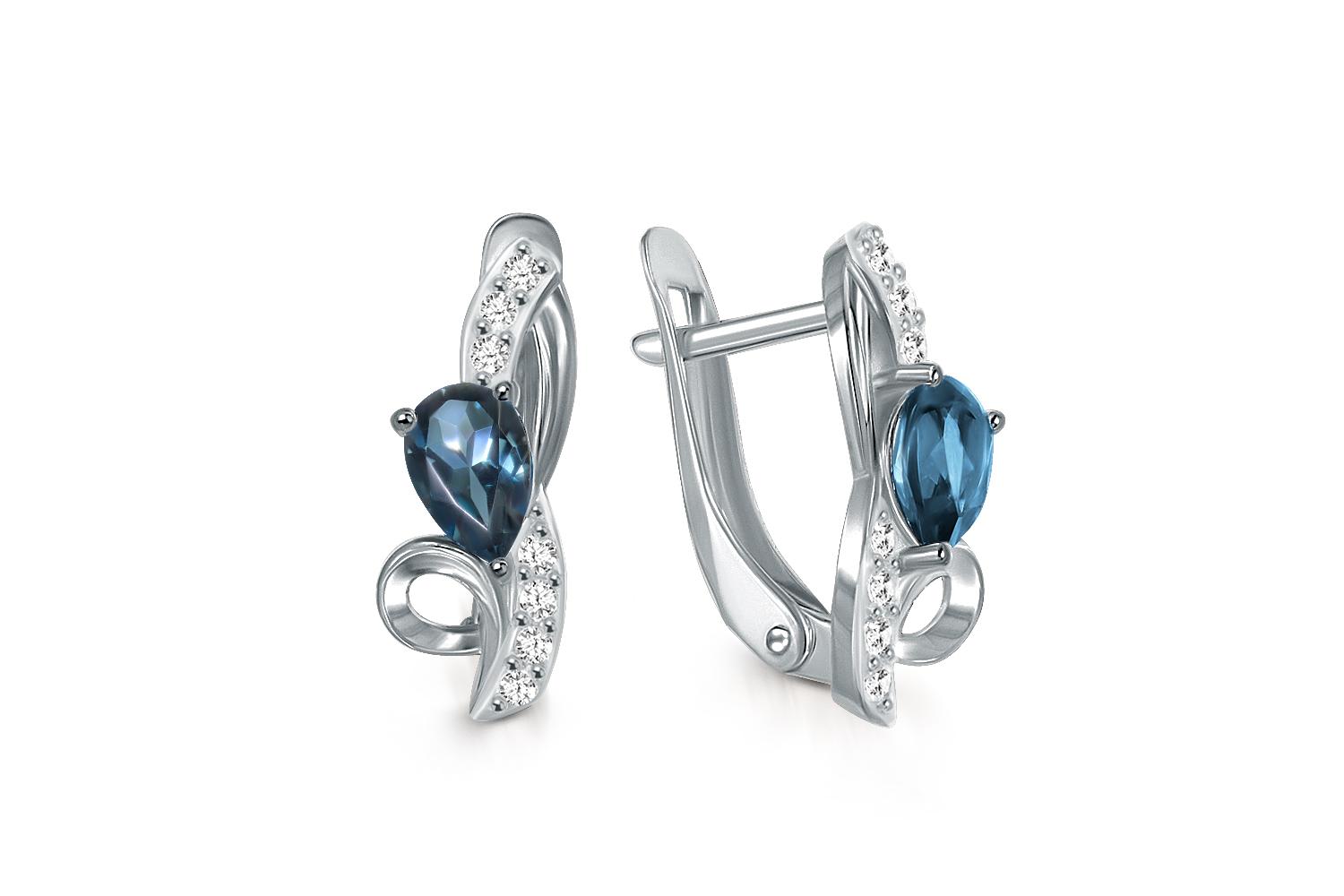 Мастера компании NEWGOLD, приложив всё свое мастерство и искусство, создали для Вас на нашем собственном производстве Серьги из белого золота с 2 топазами лондон и 14 фианитами.