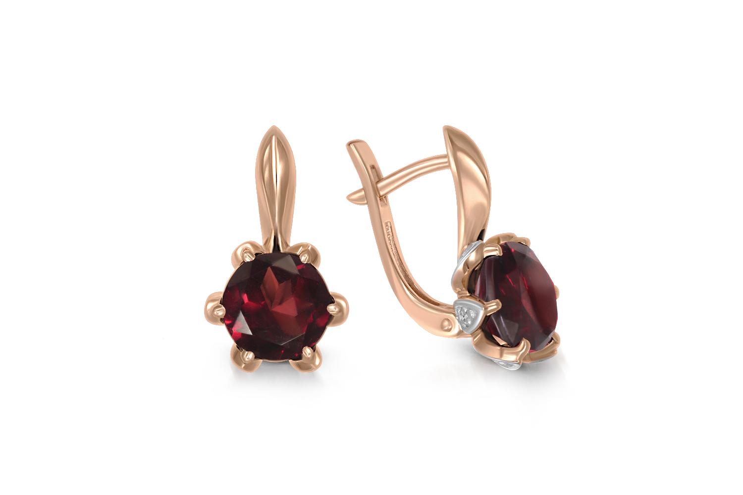Мастера компании NEWGOLD, приложив всё свое мастерство и искусство, создали для Вас на нашем собственном производстве Серьги Цветы из красного золота с 2 гранатами и 12 фианитами.