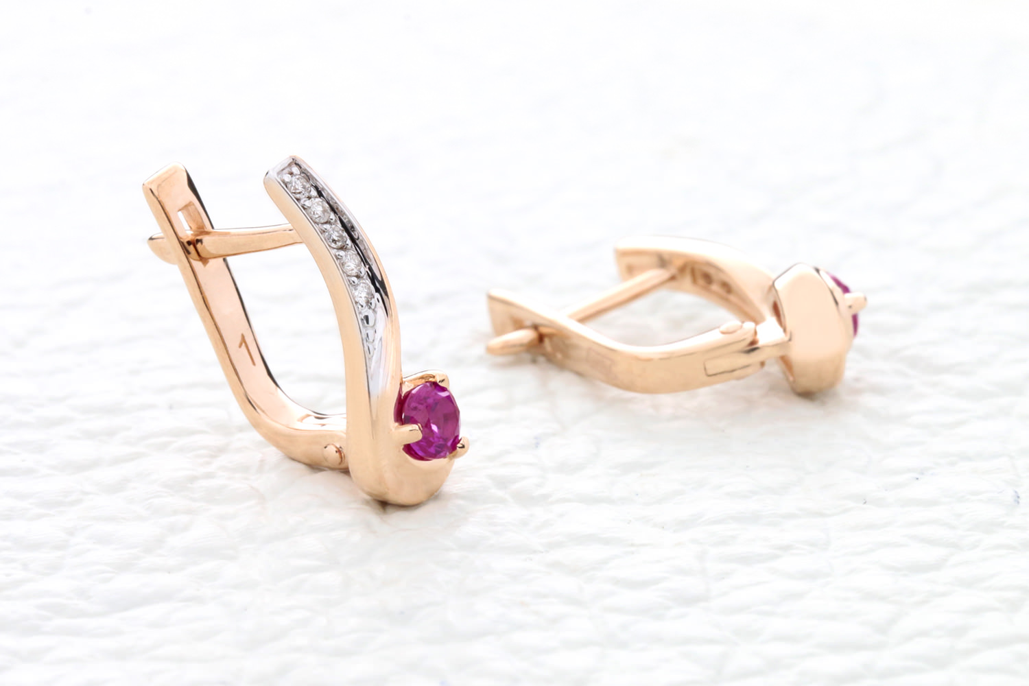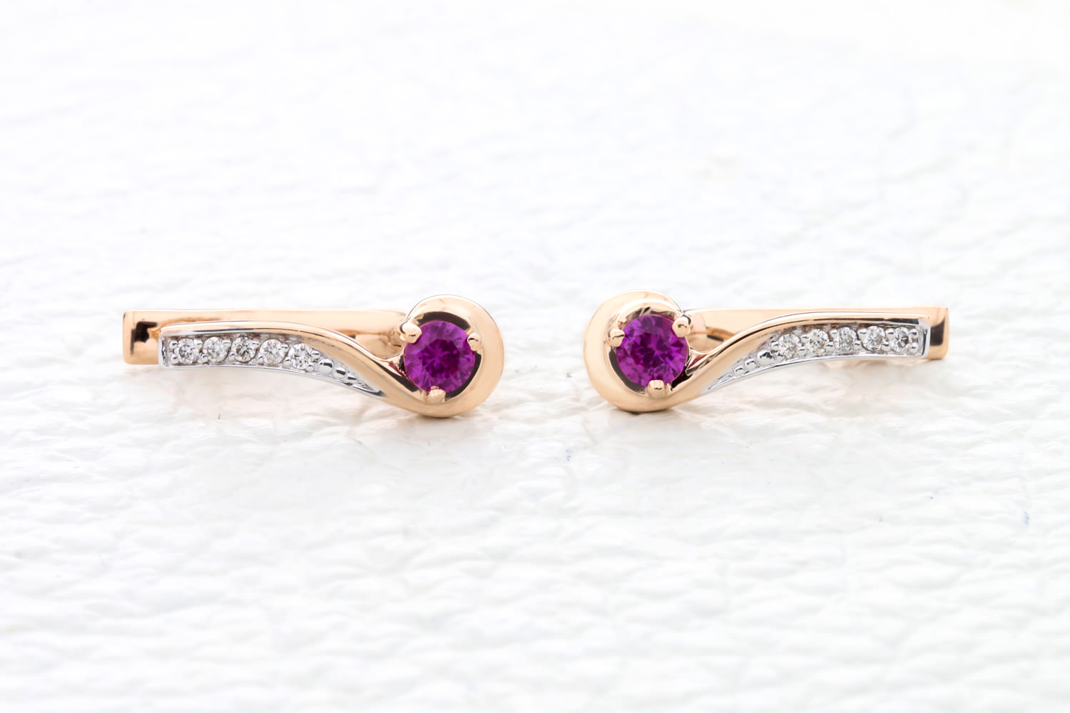 Мастера компании NEWGOLD, приложив всё свое мастерство и искусство, создали для Вас на нашем собственном производстве Серьги из красного золота с 2 корундами и 10 бриллиантами.