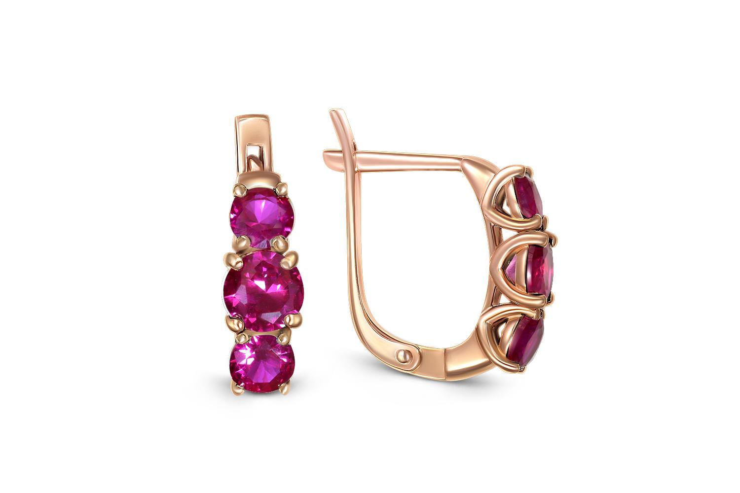 Мастера компании NEWGOLD, приложив всё свое мастерство и искусство, создали для Вас на нашем собственном производстве Серьги из красного золота с 6 корундами.