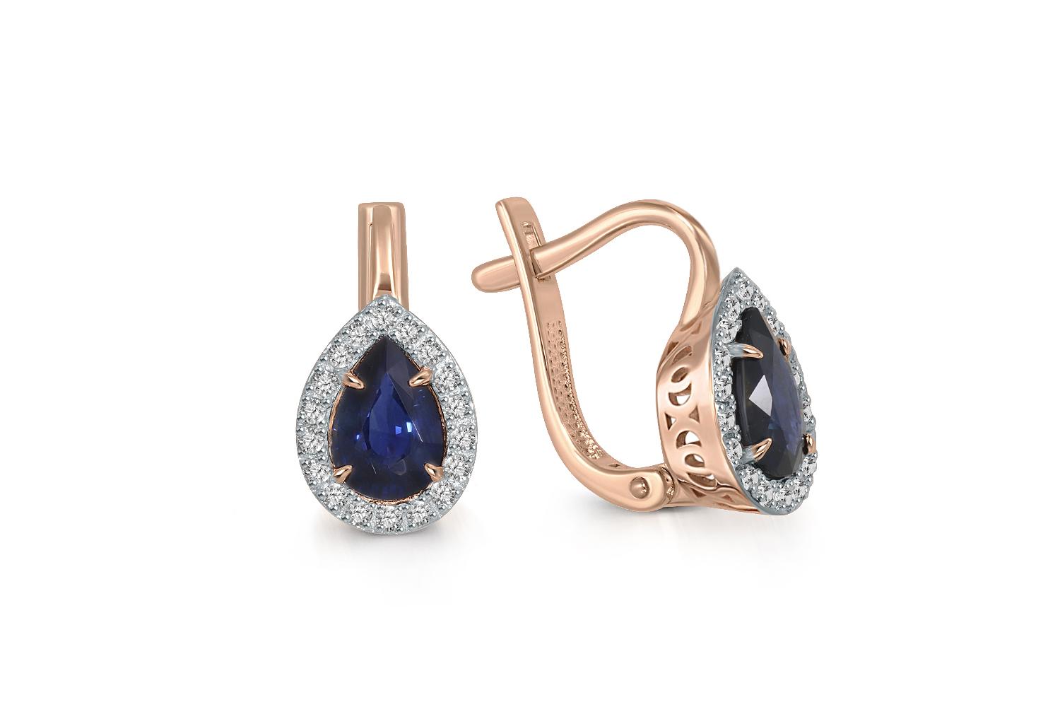Мастера компании NEWGOLD, приложив всё свое мастерство и искусство, создали для Вас на нашем собственном производстве Серьги из красного золота с 2 сапфирами и 36 бриллиантами.