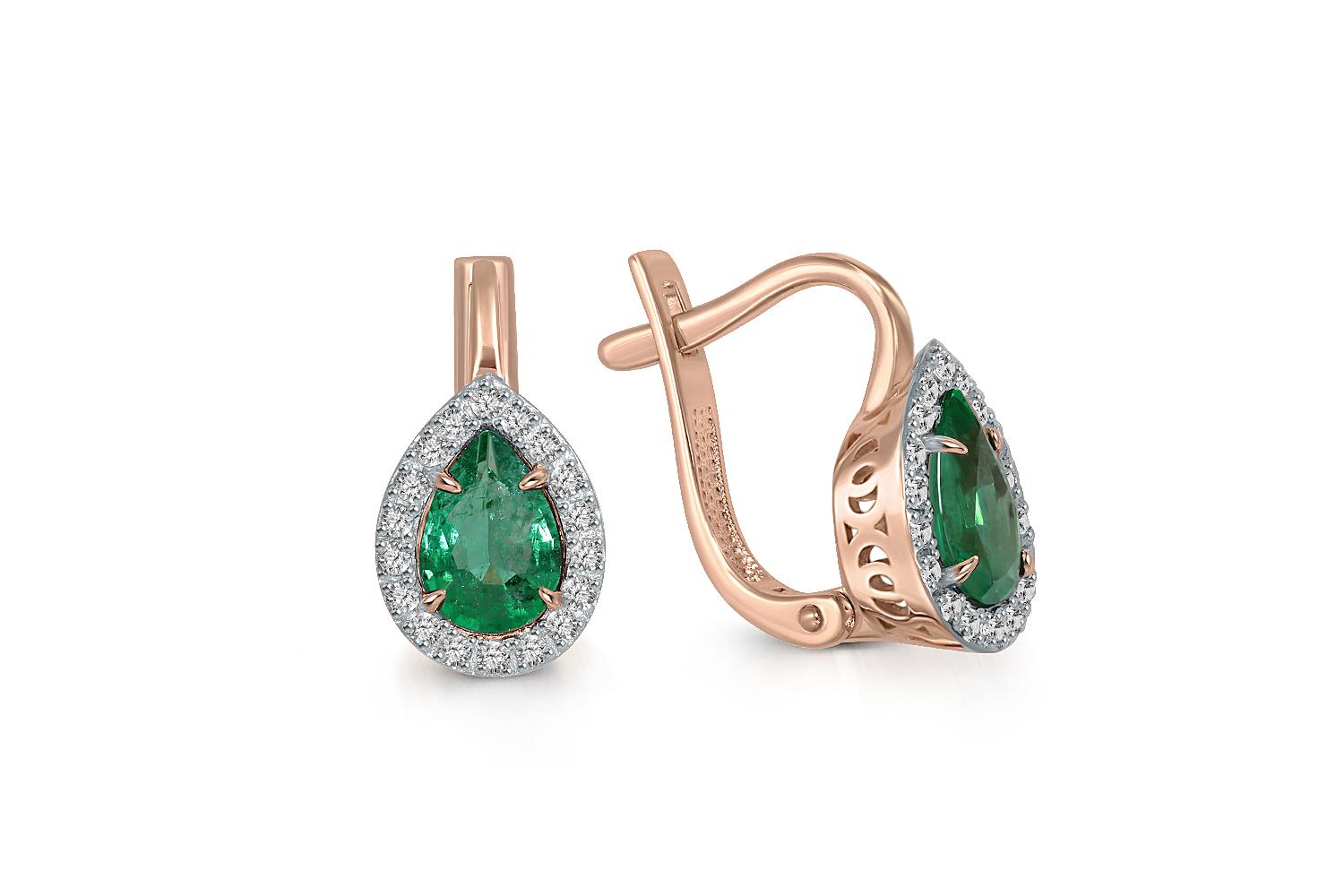 Мастера компании NEWGOLD, приложив всё свое мастерство и искусство, создали для Вас на нашем собственном производстве Серьги из красного золота с 2 изумрудами и 36 бриллиантами.