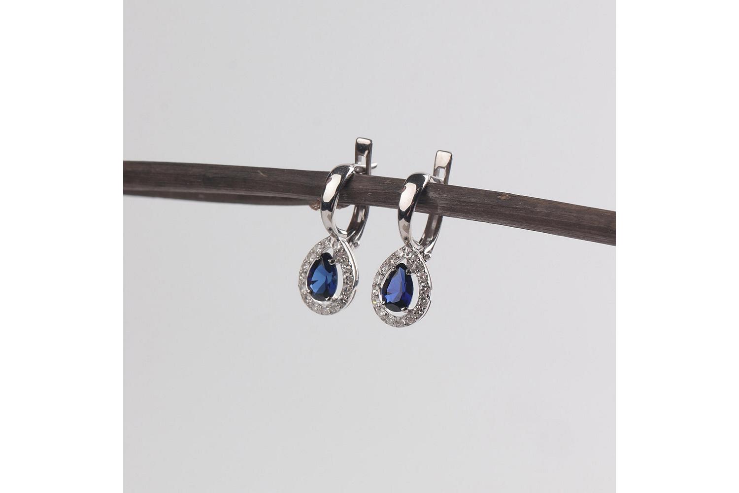 Мастера компании NEWGOLD, приложив всё свое мастерство и искусство, создали для Вас на нашем собственном производстве Серьги из белого золота с 2 корундами и 32 бриллиантами.
