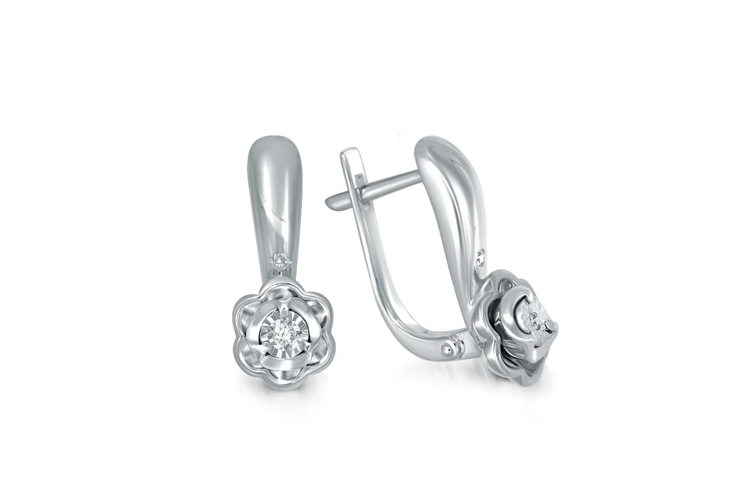 Мастера компании NEWGOLD, приложив всё свое мастерство и искусство, создали для Вас на нашем собственном производстве Серьги Цветы из белого золота с 4 бриллиантами.