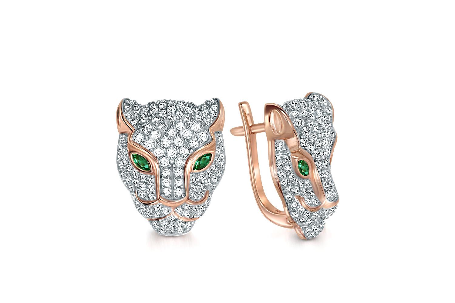 Закажите Серьги Кошки из красного золота с 4 изумрудами и 242 фианитами с получением в Москве через курьерскую службу доставки напрямую с нашего производственного склада завода NEWGOLD!