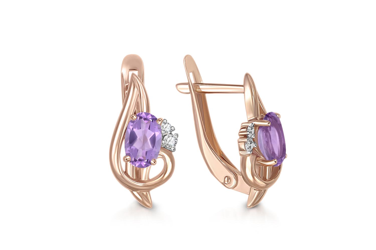 Мастера компании NEWGOLD, приложив всё свое мастерство и искусство, создали для Вас на нашем собственном производстве Серьги из красного золота с 2 аметистами и 4 фианитами.