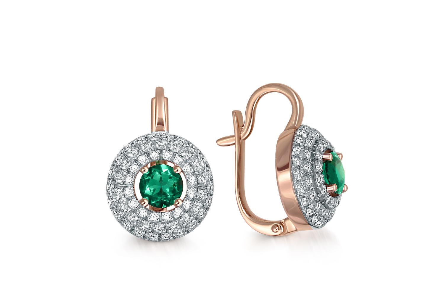 Закажите Серьги из красного золота с 2 изумрудами и 112 фианитами с получением в Москве через курьерскую службу доставки напрямую с нашего производственного склада завода NEWGOLD!