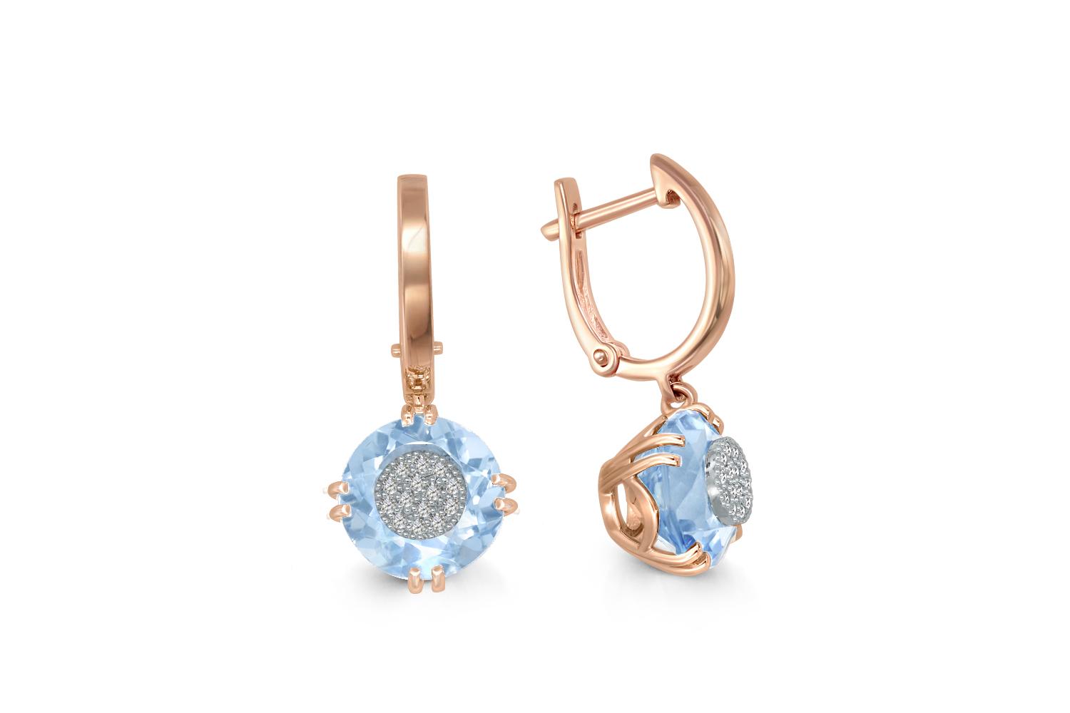 Мастера компании NEWGOLD, приложив всё свое мастерство и искусство, создали для Вас на нашем собственном производстве Серьги из красного золота с 2 топазами sky и 28 бриллиантами.