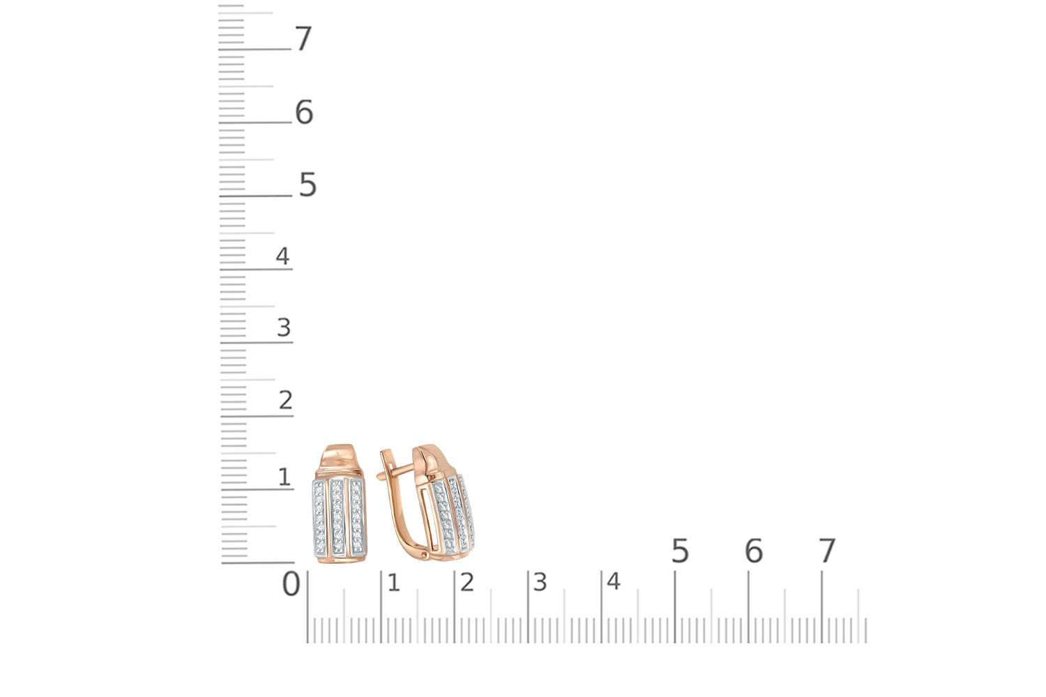 Изысканные серьги с 42 фианитами из красного золота украшенные частичным белым родированием. Изготовленные из золота 585 пробы, серьги отличаются высокой прочностью и долговечностью. Каждая серьга украшена тремя дорожками из 8 фианитов высочайшего качества, которые закреплены в тонких и изящных лапках. Это обеспечивает максимальную игру света и блеск, делая украшение поистине неотразимым.