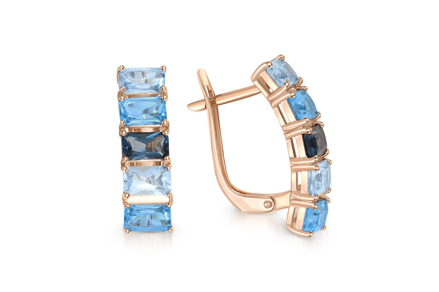Мастера компании NEWGOLD, приложив всё свое мастерство и искусство, создали для Вас на нашем собственном производстве Серьги из красного золота с топазами sky, топазами swiss и топазами лондон.