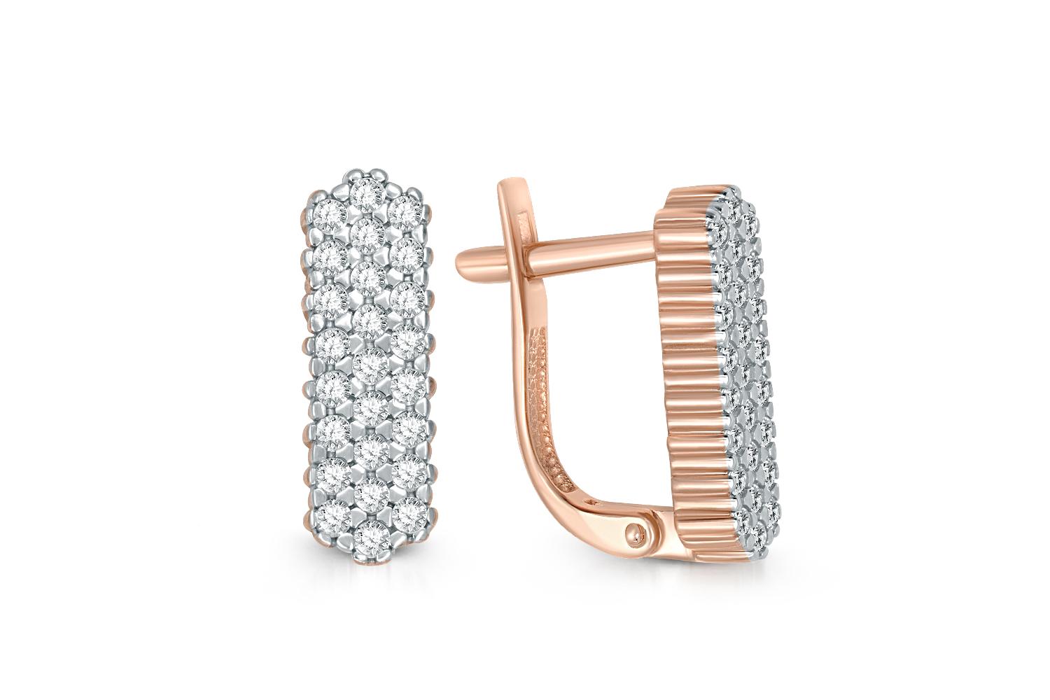 Мастера компании NEWGOLD, приложив всё свое мастерство и искусство, создали для Вас на нашем собственном производстве Серьги из красного золота с 50 фианитами.