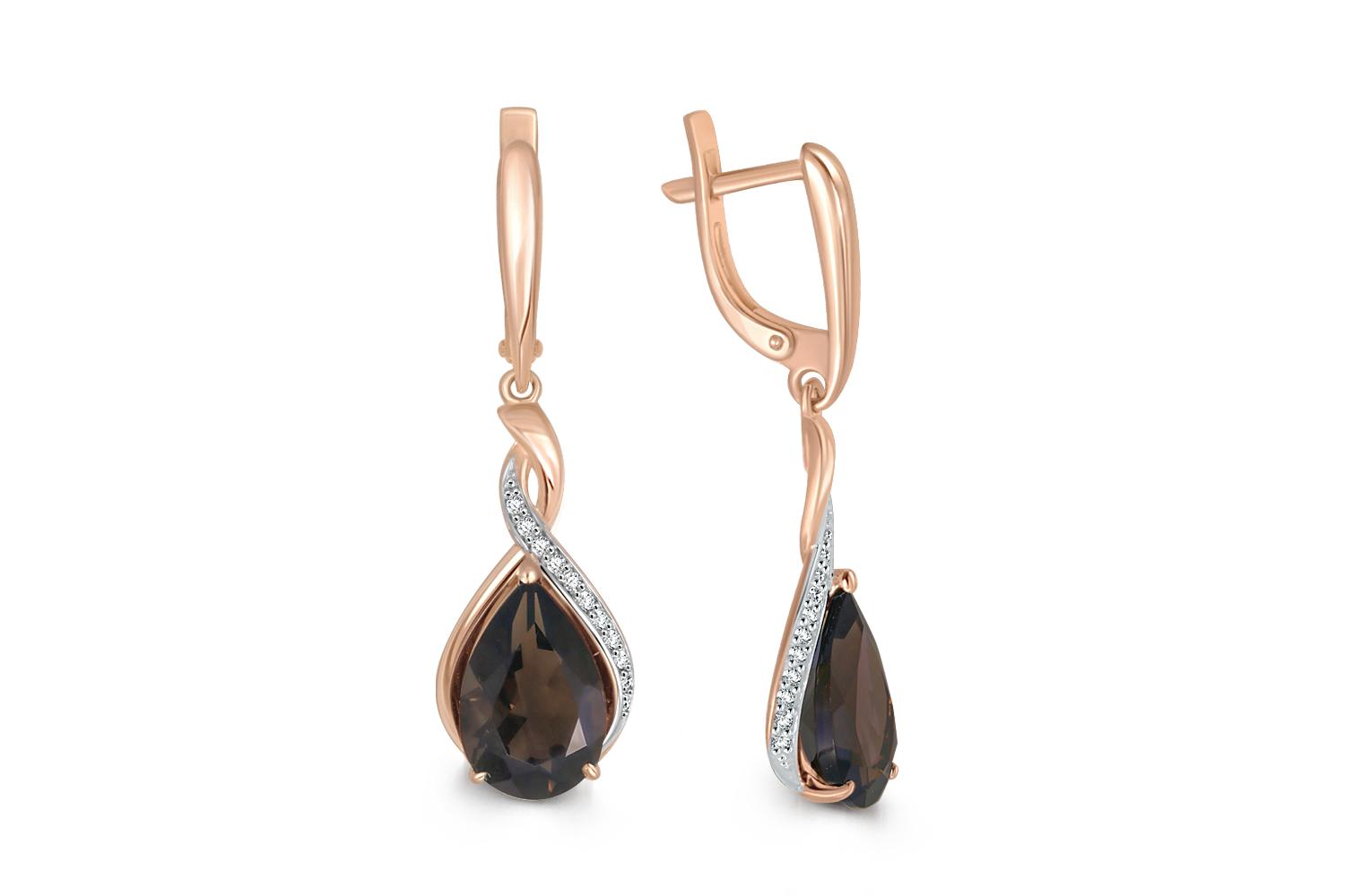 Мастера компании NEWGOLD, приложив всё свое мастерство и искусство, создали для Вас на нашем собственном производстве Серьги из красного золота с 2 раухтопазами и 24 фианитами.