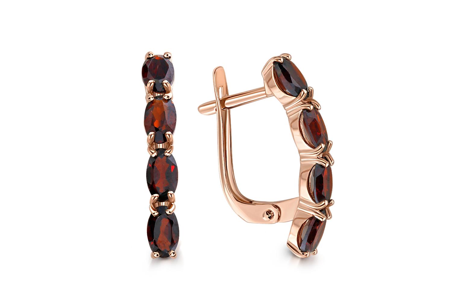 Мастера компании NEWGOLD, приложив всё свое мастерство и искусство, создали для Вас на нашем собственном производстве Серьги Дорожки из красного золота с 8 гранатами.