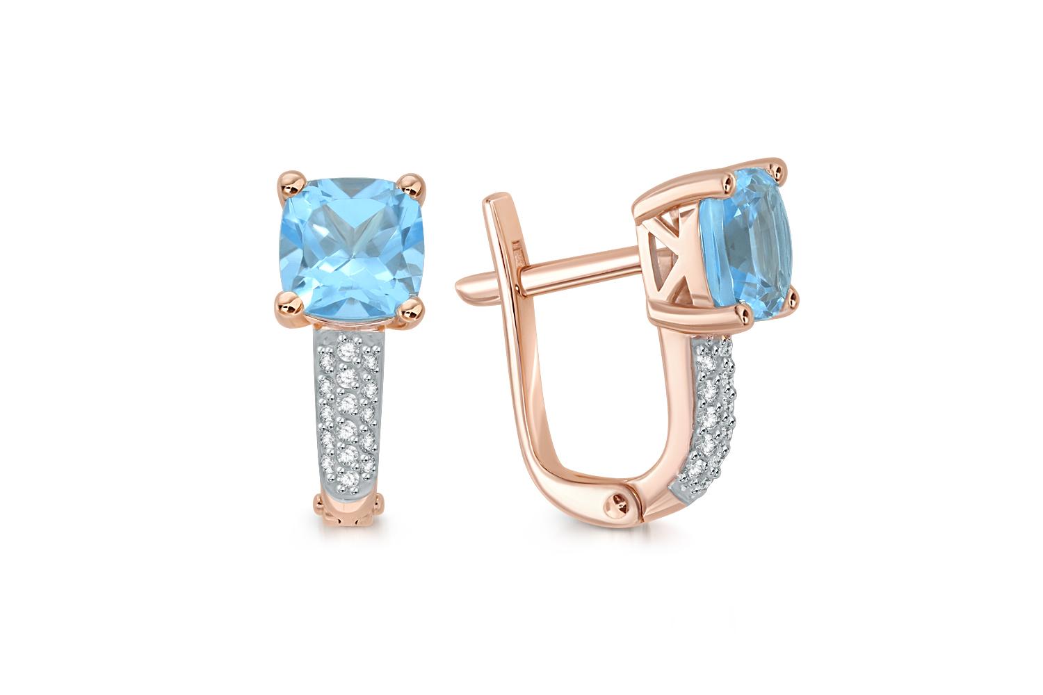 Закажите Серьги из красного золота с 2 топазами swiss и 32 фианитами с получением в Москве через курьерскую службу доставки напрямую с нашего производственного склада завода NEWGOLD!