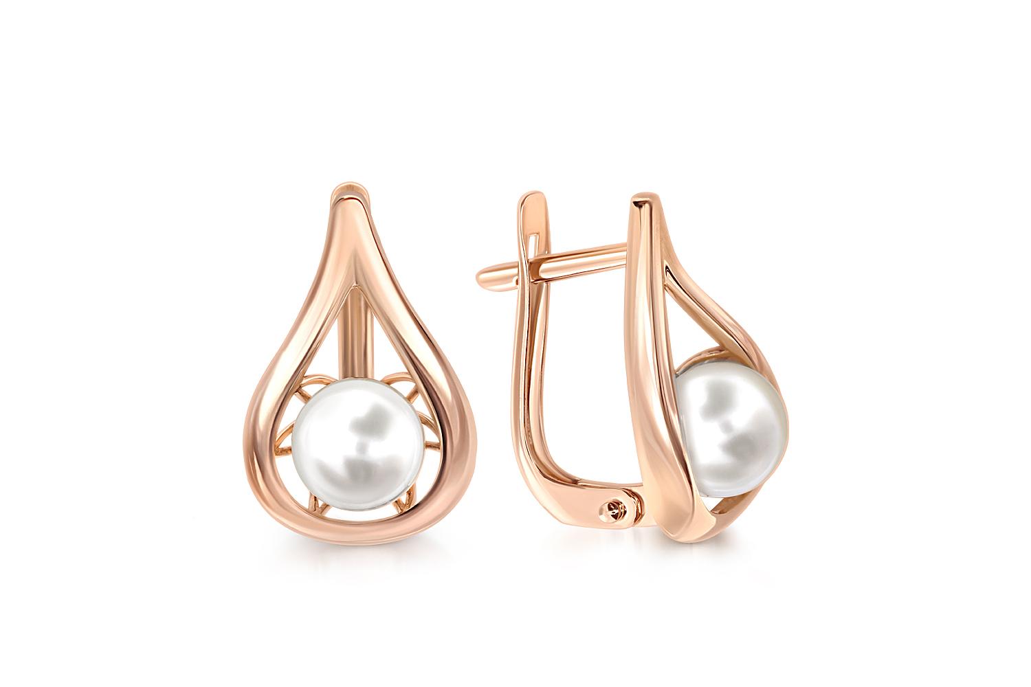 Закажите Серьги из красного золота с 2 жемчужинами с получением в Москве через курьерскую службу доставки напрямую с нашего производственного склада завода NEWGOLD!