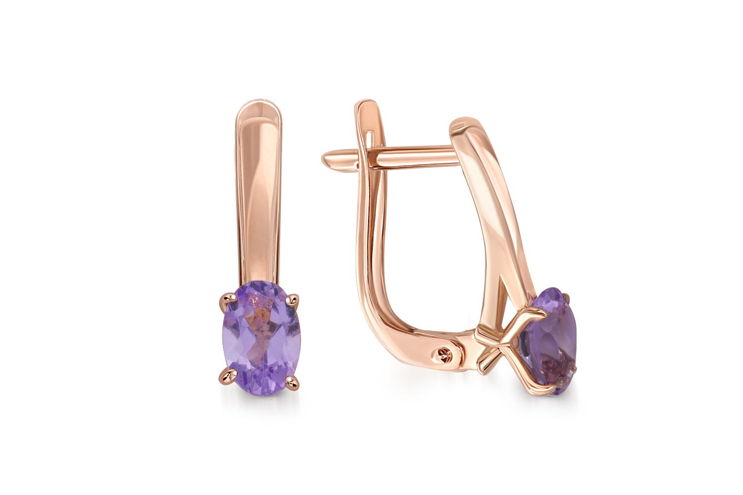 Мастера компании NEWGOLD, приложив всё свое мастерство и искусство, создали для Вас на нашем собственном производстве Серьги из красного золота с 2 аметистами.