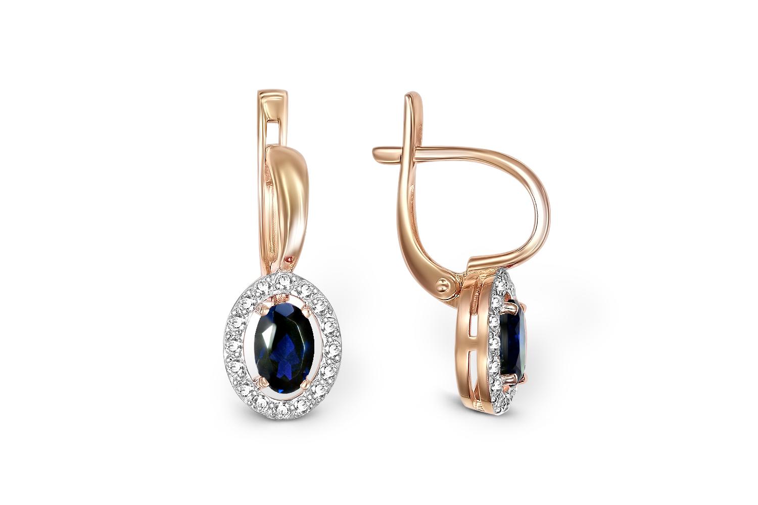 Серьги с 2 сапфирами и 32 бриллиантами из красного золота 585 пробы. Серьги - это изысканный и стильный аксессуар, который станет отличным дополнением к вашему образу. Используя только лучшие материалы и камни, эти серьги обладают неповторимым шармом и элегантностью. В центре украшения находится сапфир окруженный дорожкой из бриллиантов. Синий или голубой корунд (сапфир) поможет определить себя в профессии, в обществе. Придает уверенности, раскрывает талант, концентрирует внимание. Его носят люди творческих занятий, ученые, студенты. Каждая деталь тщательно проработана, чтобы создать уникальный и изящный дизайн. Они станут прекрасным подарком для особенной женщины или просто отличным способом подчеркнуть свой стиль. Позвольте себе быть уверенной и изящной, но при этом оставайтесь неповторимой с этими прекрасными серьгами из красного золота с 2 сапфирами и 32 бриллиантами.