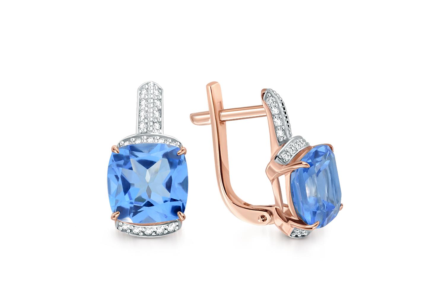 Закажите Серьги из красного золота с 2 топазами swiss и 36 фианитами с получением в Москве через курьерскую службу доставки напрямую с нашего производственного склада завода NEWGOLD!