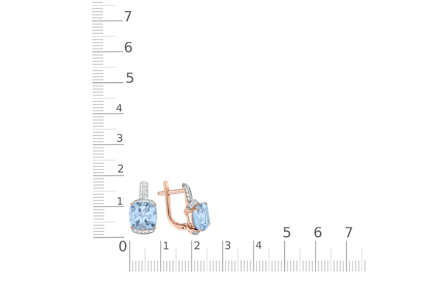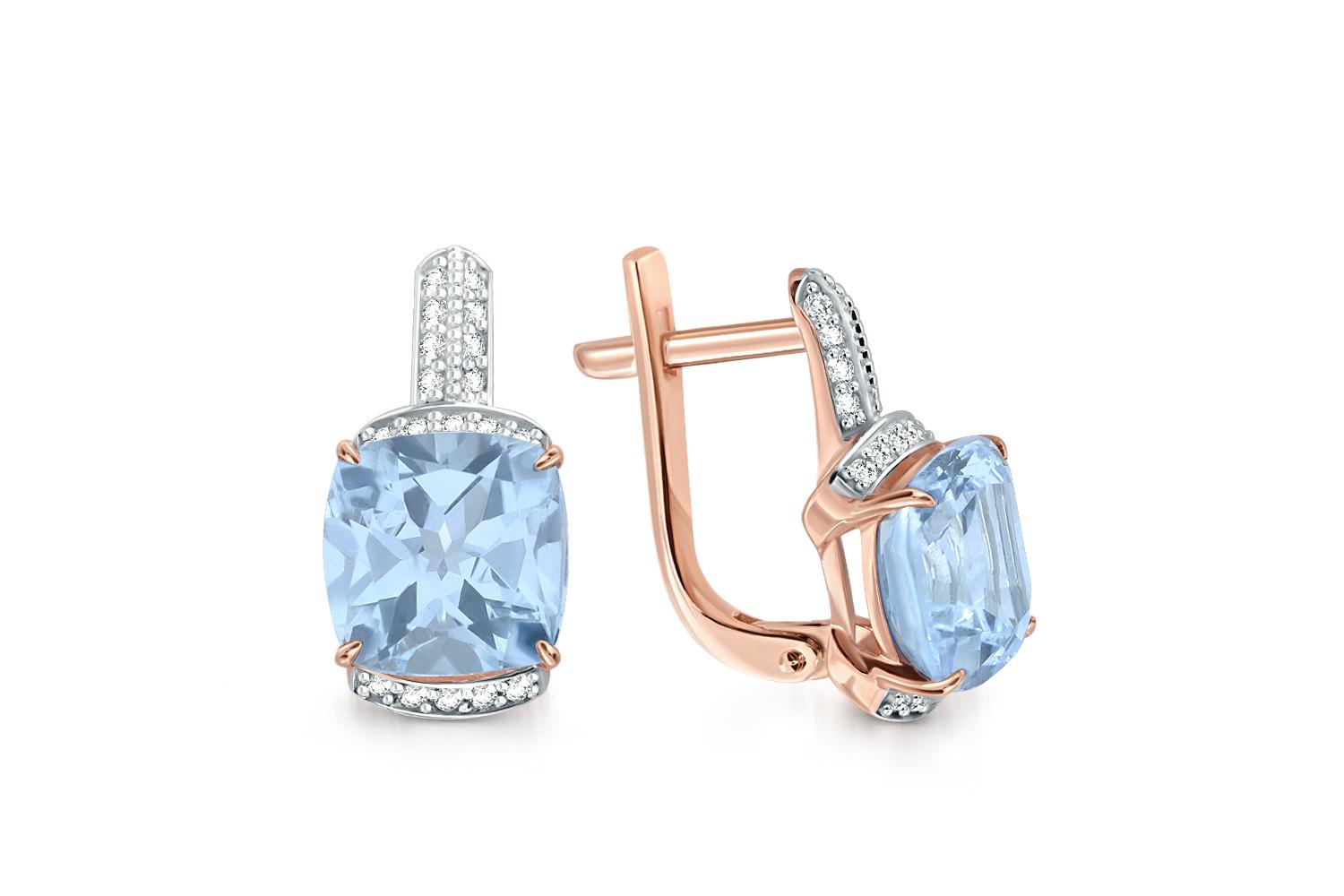 Коллекция: Акцент. Металл: Золото, цвет: Красный , проба: 585. Вставки: Топаз Sky натуральный, количество 2 шт. , огранка антик, размер 8*8 ; Фианит б/цв, количество 36 шт.