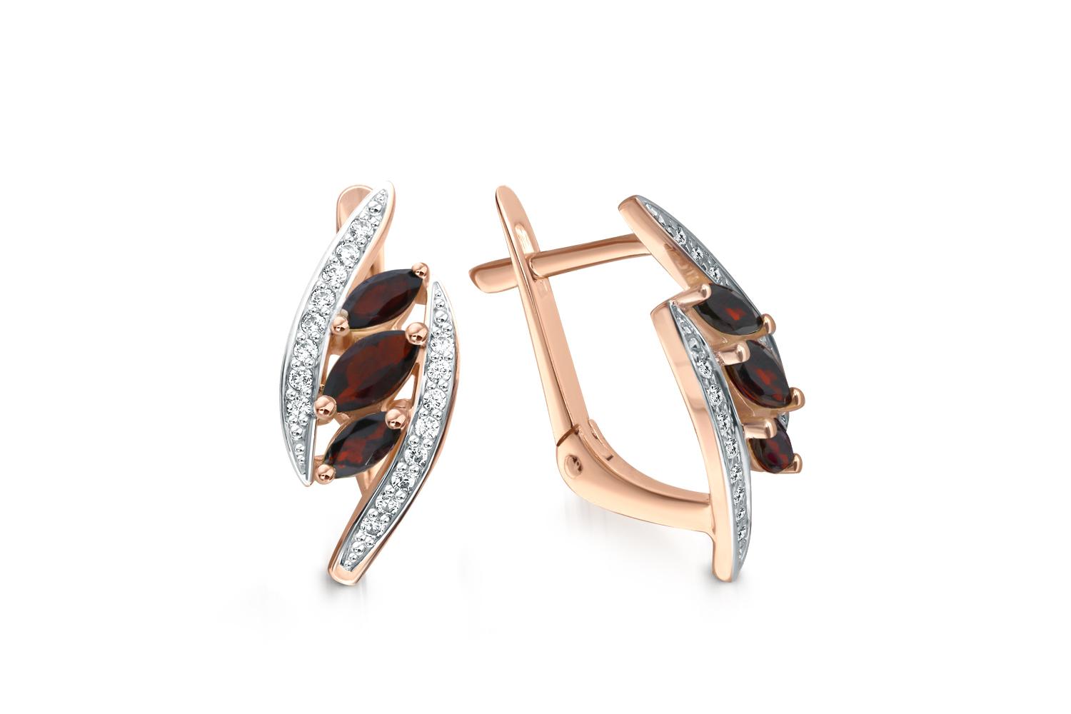 Гранат натуральный, количество 2 шт., огранка маркиз, размер 5ˣ2,5 ; Гранат натуральный, количество 4 шт., огранка маркиз, размер 4ˣ2 ; Фианит б/цв, количество 32 шт., огранка круг, размер 1 мм