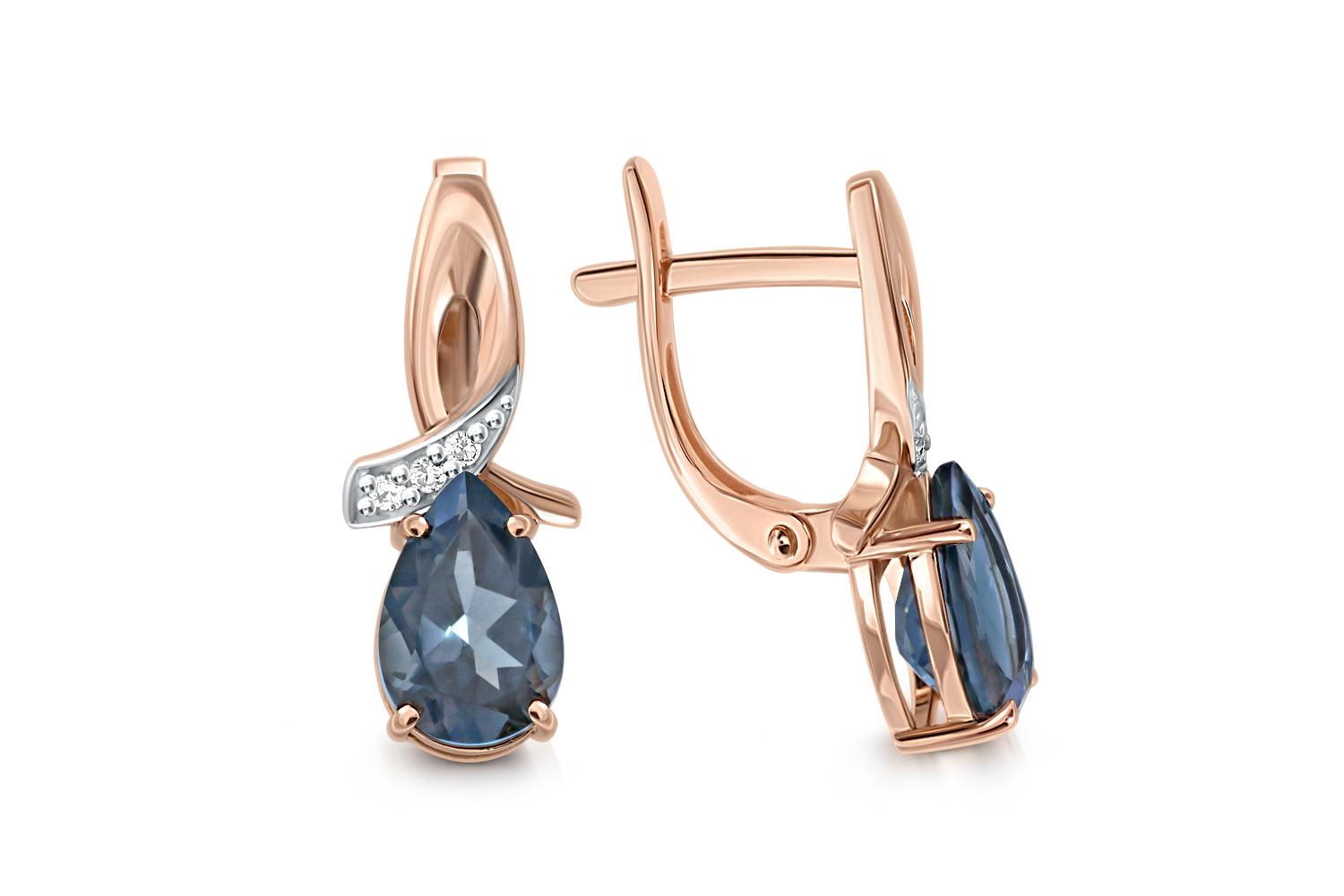 Закажите Серьги из красного золота с 2 топазами лондон и 6 фианитами с получением в Москве через курьерскую службу доставки напрямую с нашего производственного склада завода NEWGOLD!