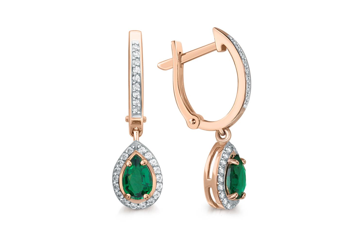 Закажите Серьги из красного золота с 2 изумрудами и 54 фианитами с получением в Москве через курьерскую службу доставки напрямую с нашего производственного склада завода NEWGOLD!
