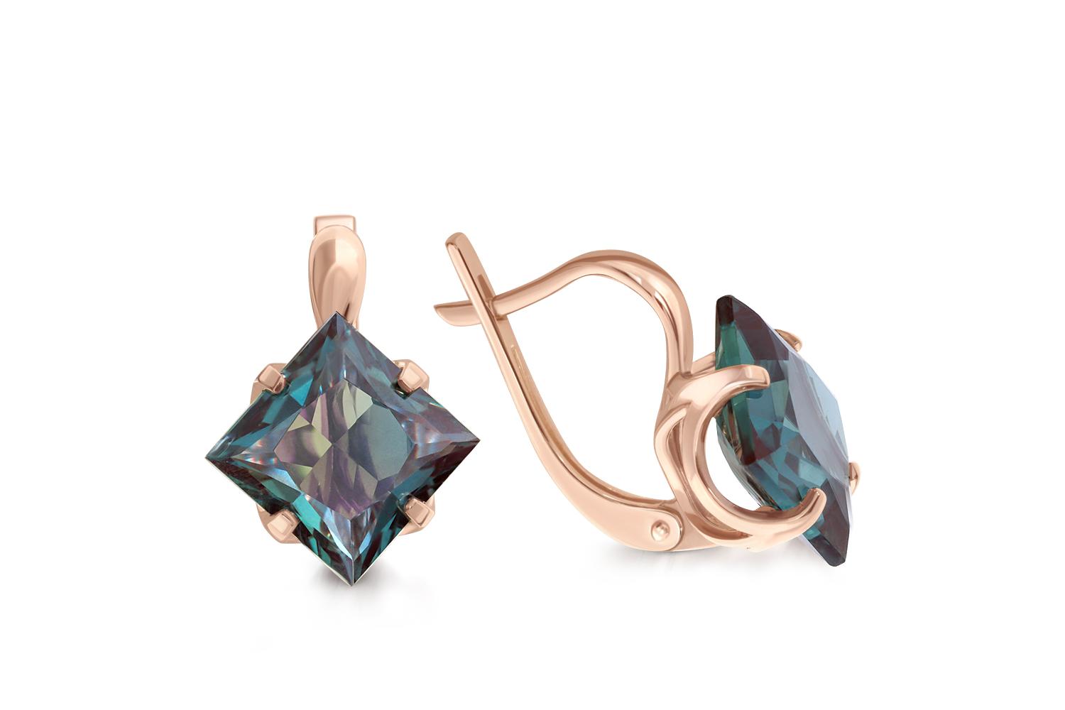 Закажите Серьги из красного золота с 2 александритами с получением в Москве через курьерскую службу доставки напрямую с нашего производственного склада завода NEWGOLD!