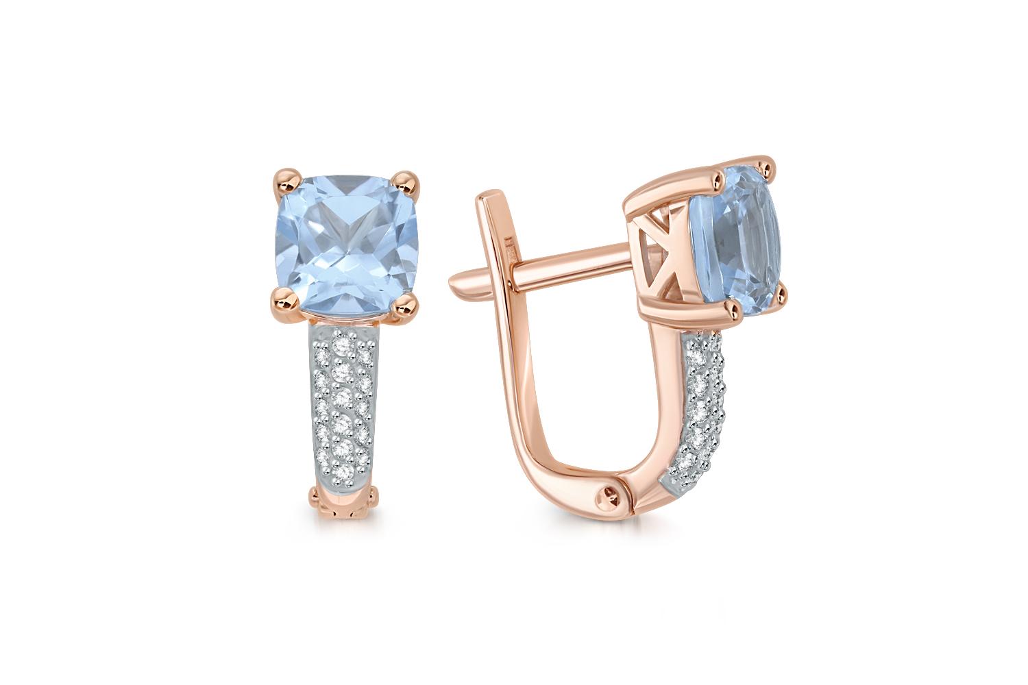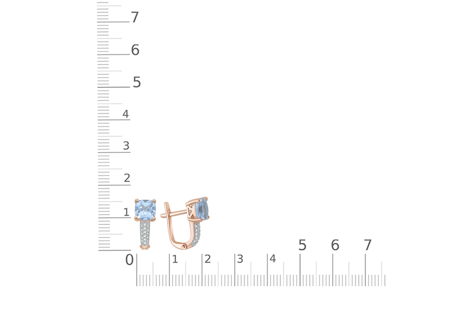 Мастера компании NEWGOLD, приложив всё свое мастерство и искусство, создали для Вас на нашем собственном производстве Серьги из красного золота с 2 топазами sky и 32 фианитами.