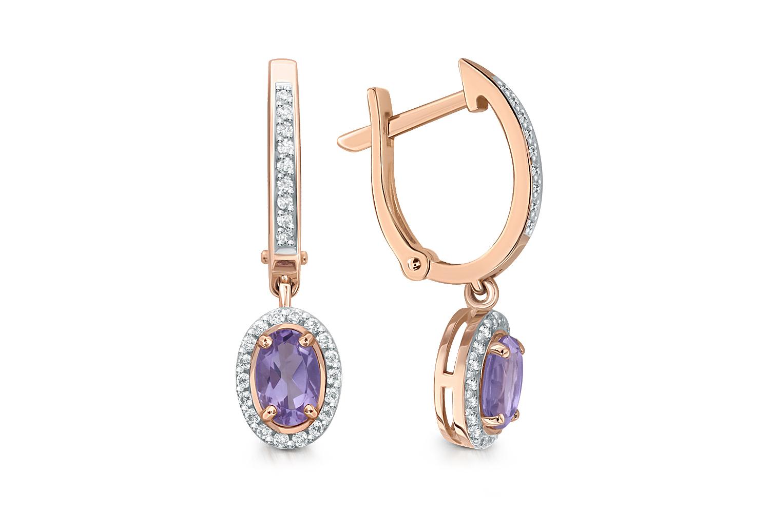 Закажите Серьги из красного золота с 2 аметистами и 54 фианитами с получением в Москве через курьерскую службу доставки напрямую с нашего производственного склада завода NEWGOLD!