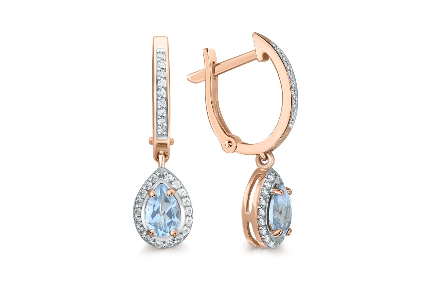 Закажите Серьги из красного золота с 2 топазами sky и 54 фианитами с получением в Москве через курьерскую службу доставки напрямую с нашего производственного склада завода NEWGOLD!