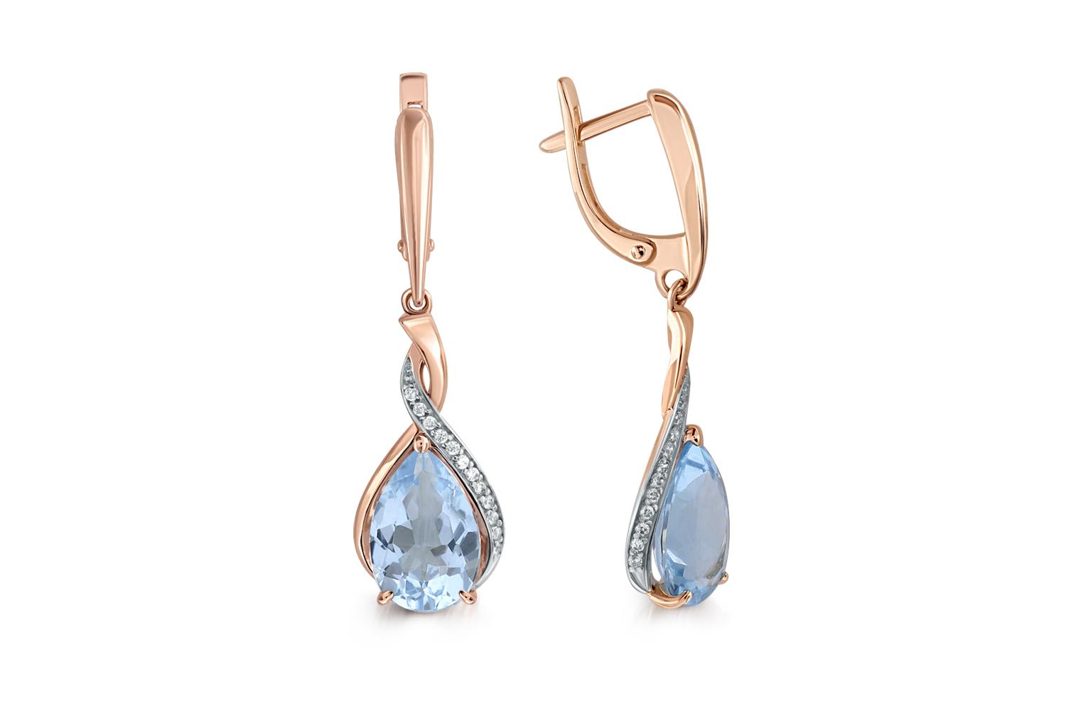 Мастера компании NEWGOLD, приложив всё свое мастерство и искусство, создали для Вас на нашем собственном производстве Серьги из красного золота с 2 топазами sky и 24 фианитами.