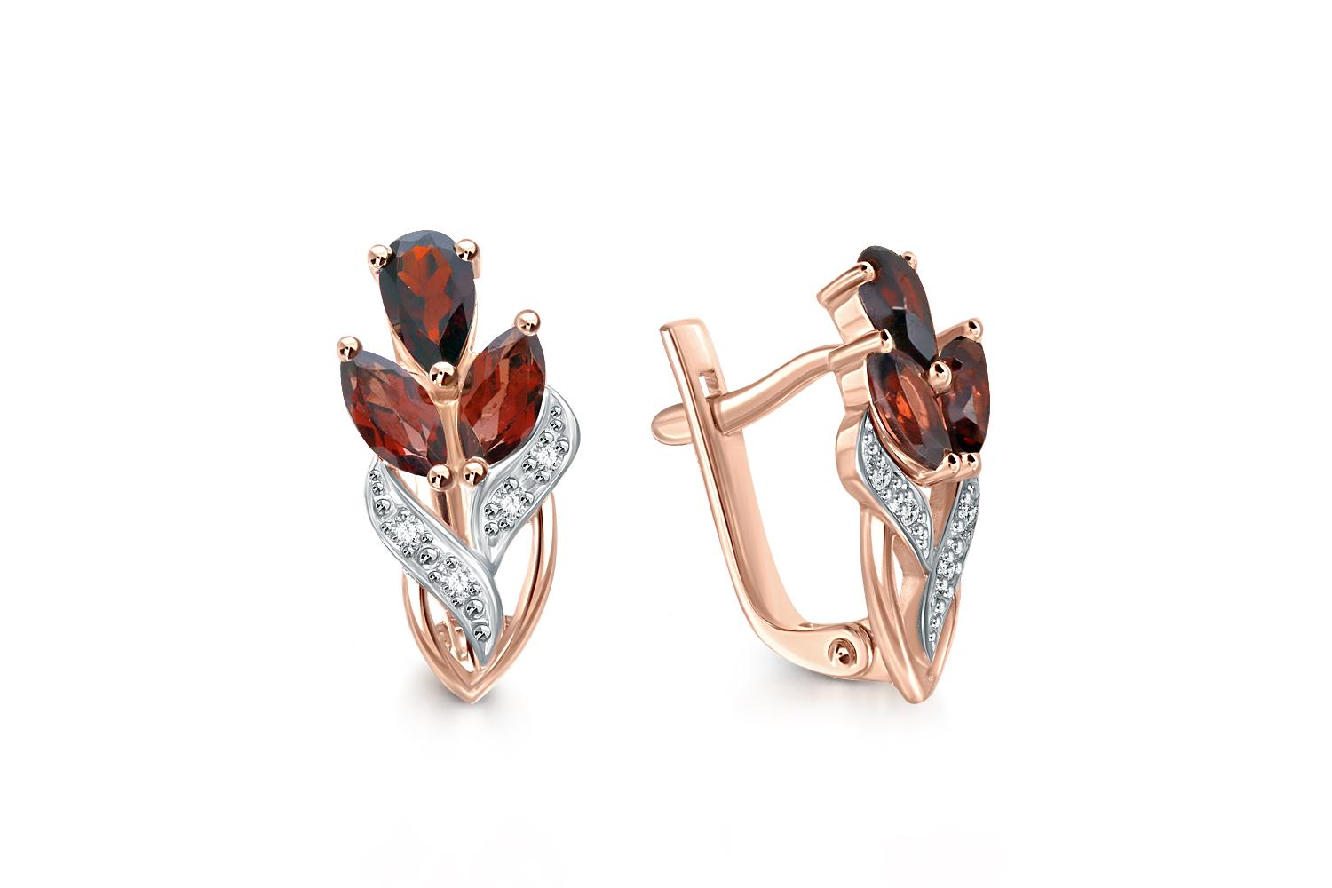 Мастера компании NEWGOLD, приложив всё свое мастерство и искусство, создали для Вас на нашем собственном производстве Серьги Цветы из красного золота с 6 гранатами и 8 фианитами.