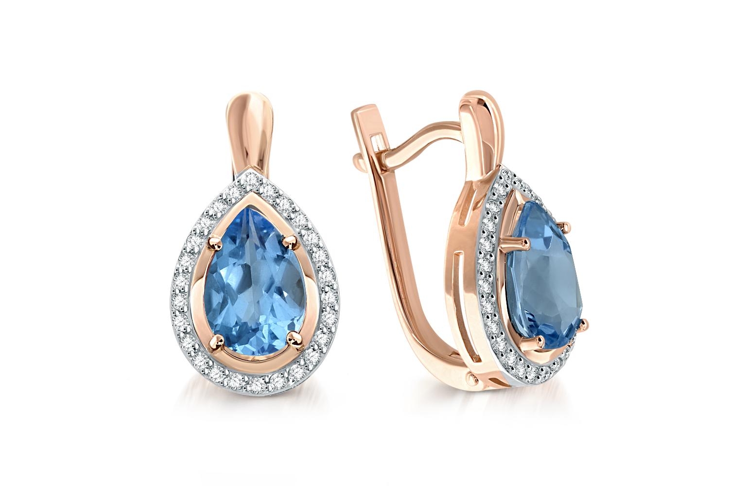 Мастера компании NEWGOLD, приложив всё свое мастерство и искусство, создали для Вас на нашем собственном производстве Серьги из красного золота с 2 топазами swiss и 52 фианитами.