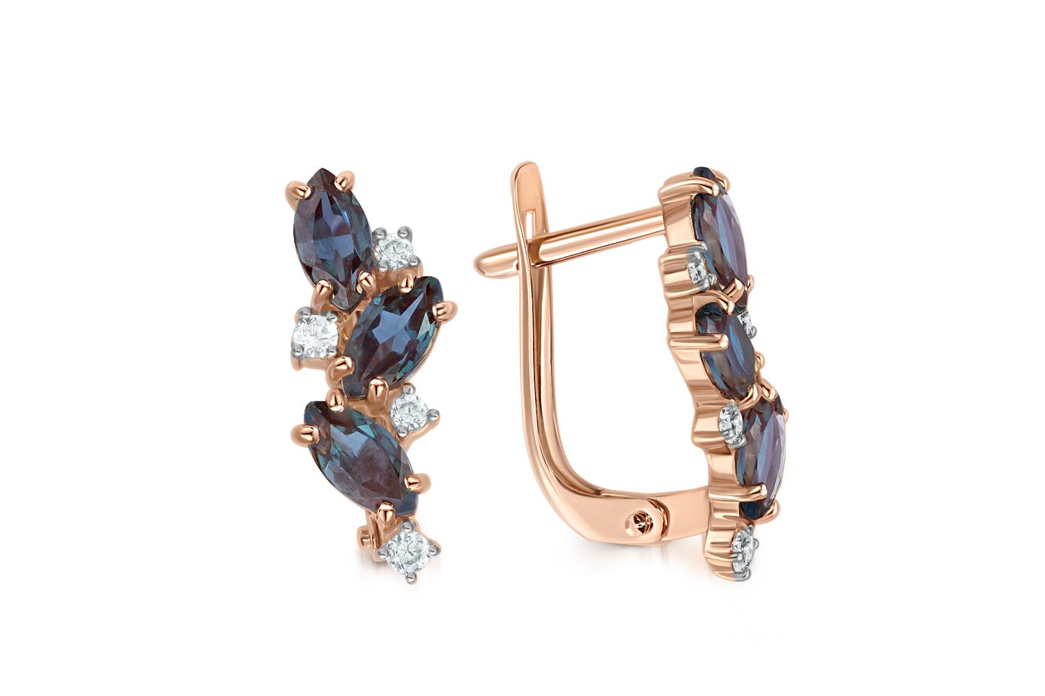 Мастера компании NEWGOLD, приложив всё свое мастерство и искусство, создали для Вас на нашем собственном производстве Серьги из красного золота с 6 александритами и 8 фианитами.