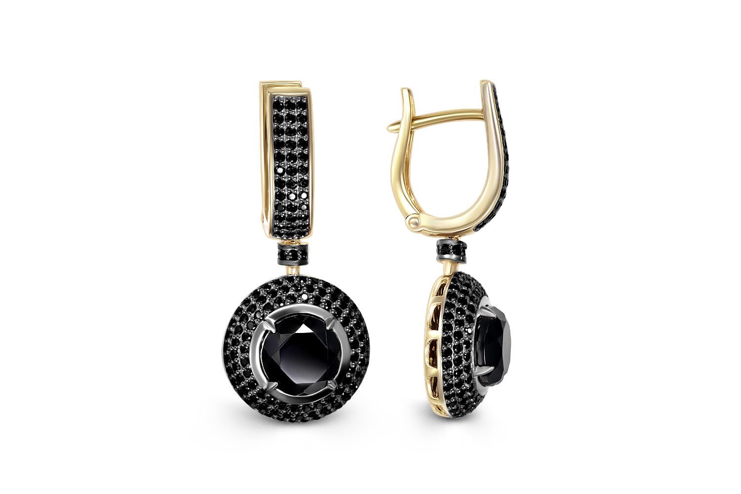 Мастера компании NEWGOLD, приложив всё свое мастерство и искусство, создали для Вас на нашем собственном производстве Серьги из жёлтого золота с 2 шпинелями и 290 фианитами.