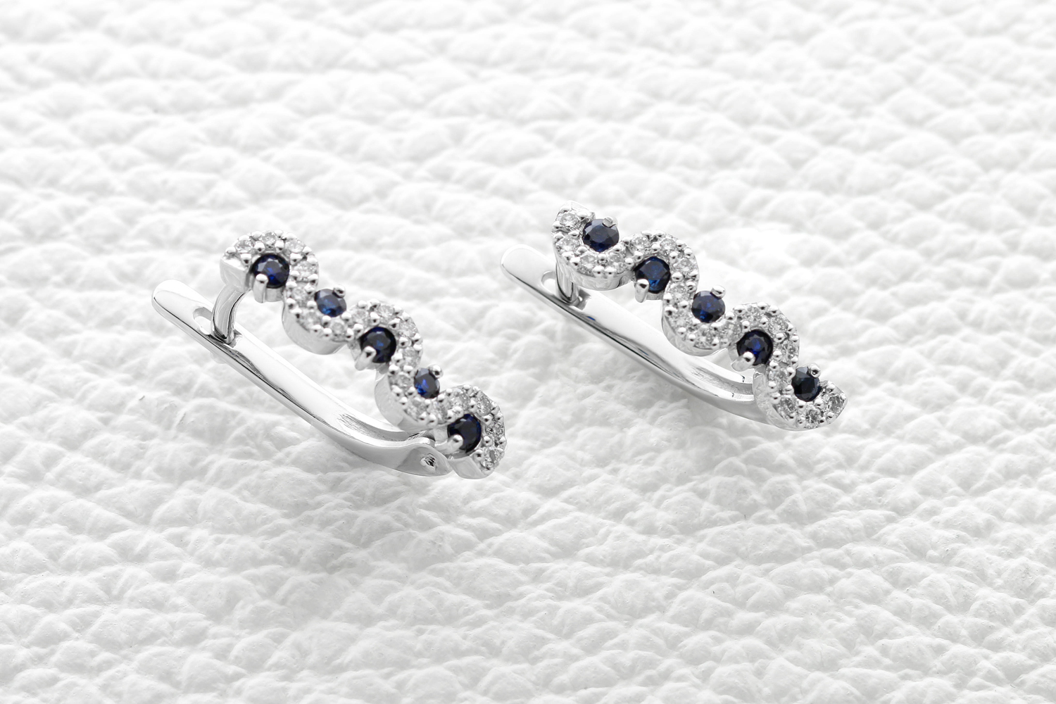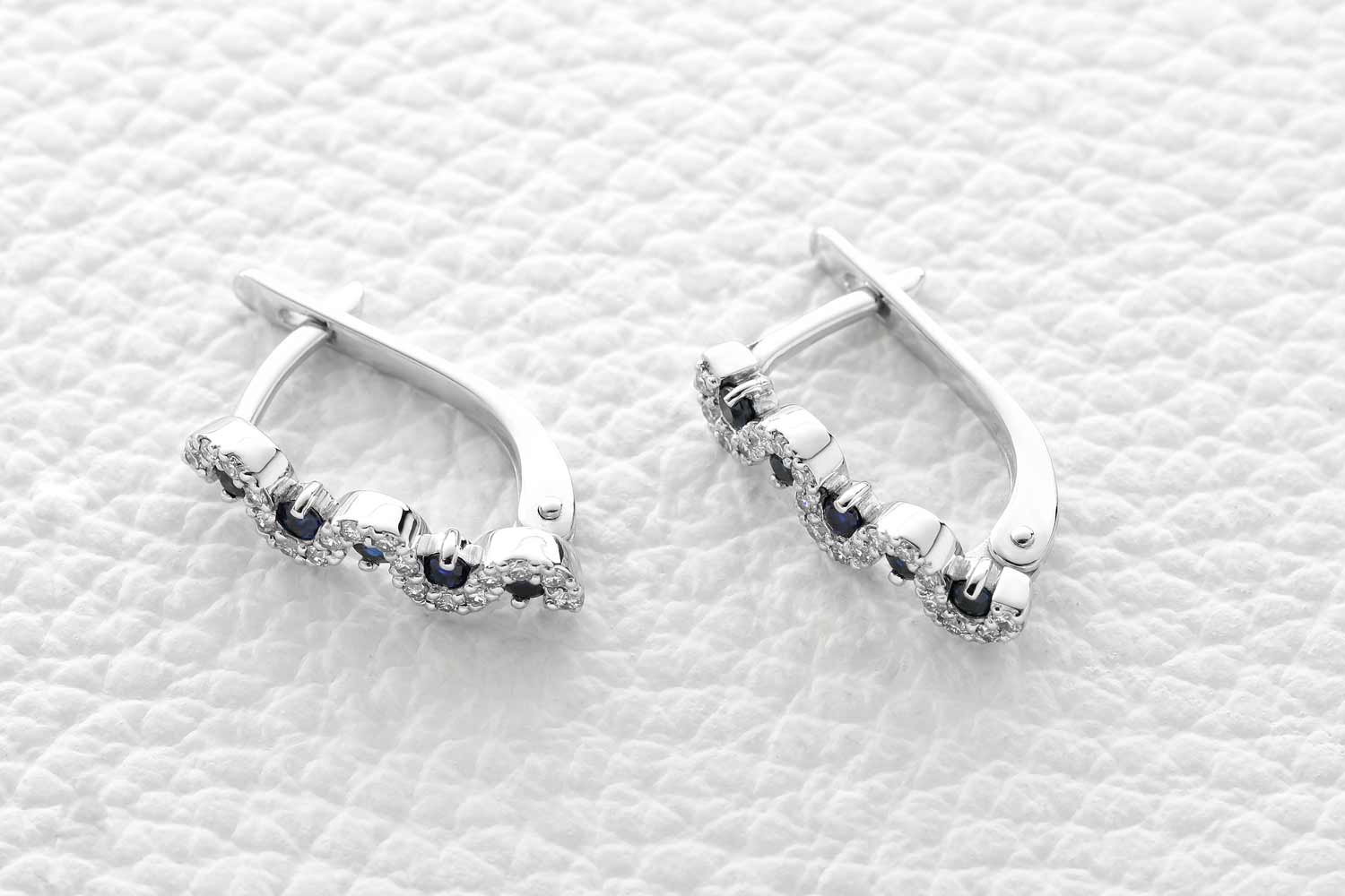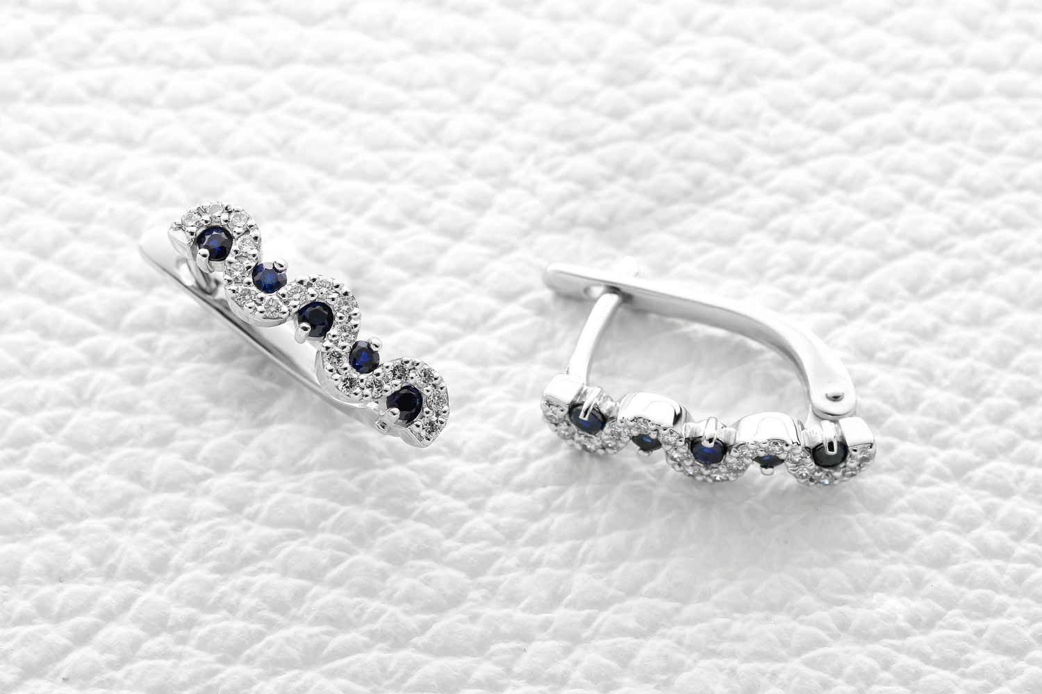 Мастера компании NEWGOLD, приложив всё свое мастерство и искусство, создали для Вас на нашем собственном производстве Серьги Дорожки из белого золота с 10 сапфирами и 36 бриллиантами.