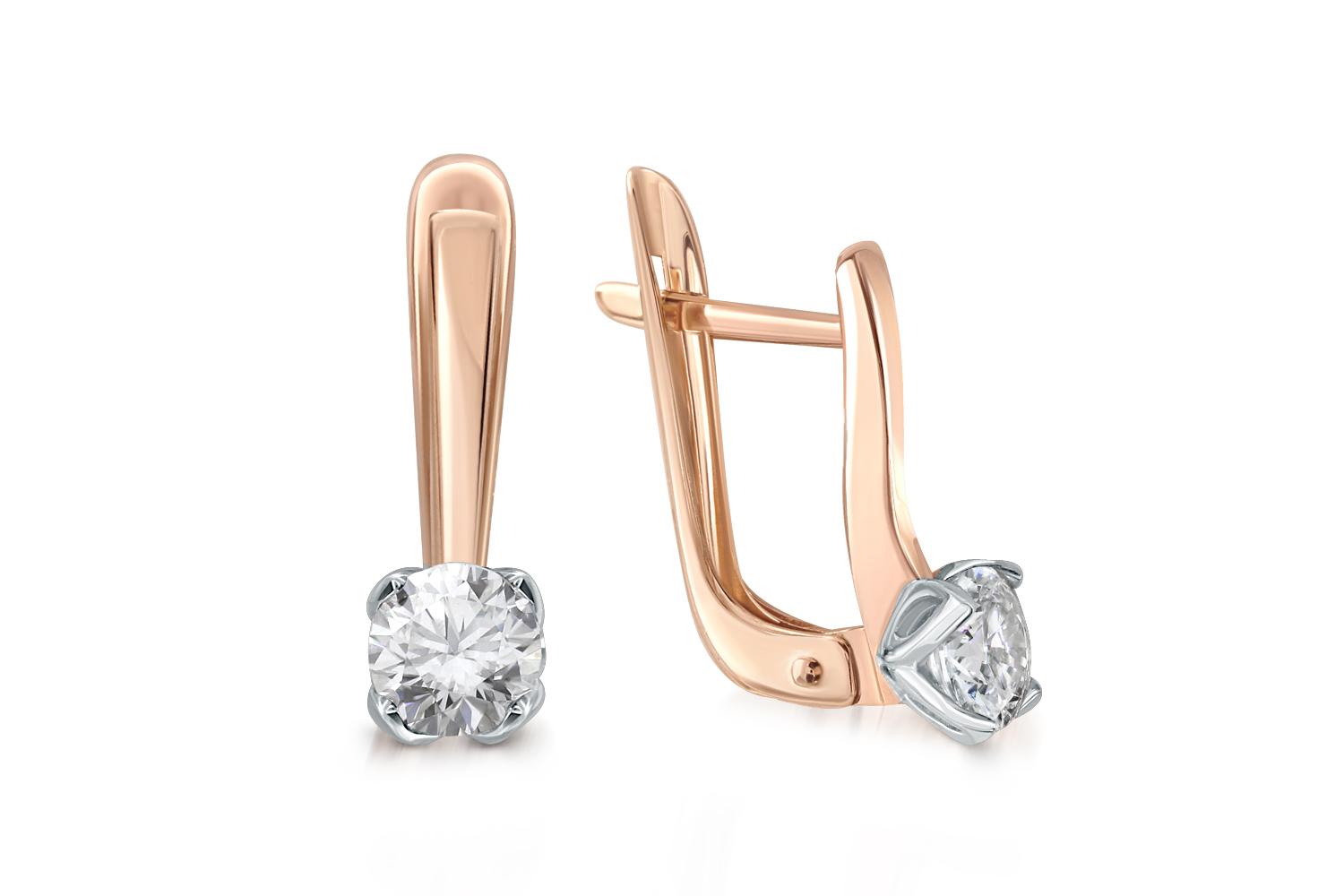Закажите Серьги из красного золота с 2 муассанитами с получением в Москве через курьерскую службу доставки напрямую с нашего производственного склада завода NEWGOLD!