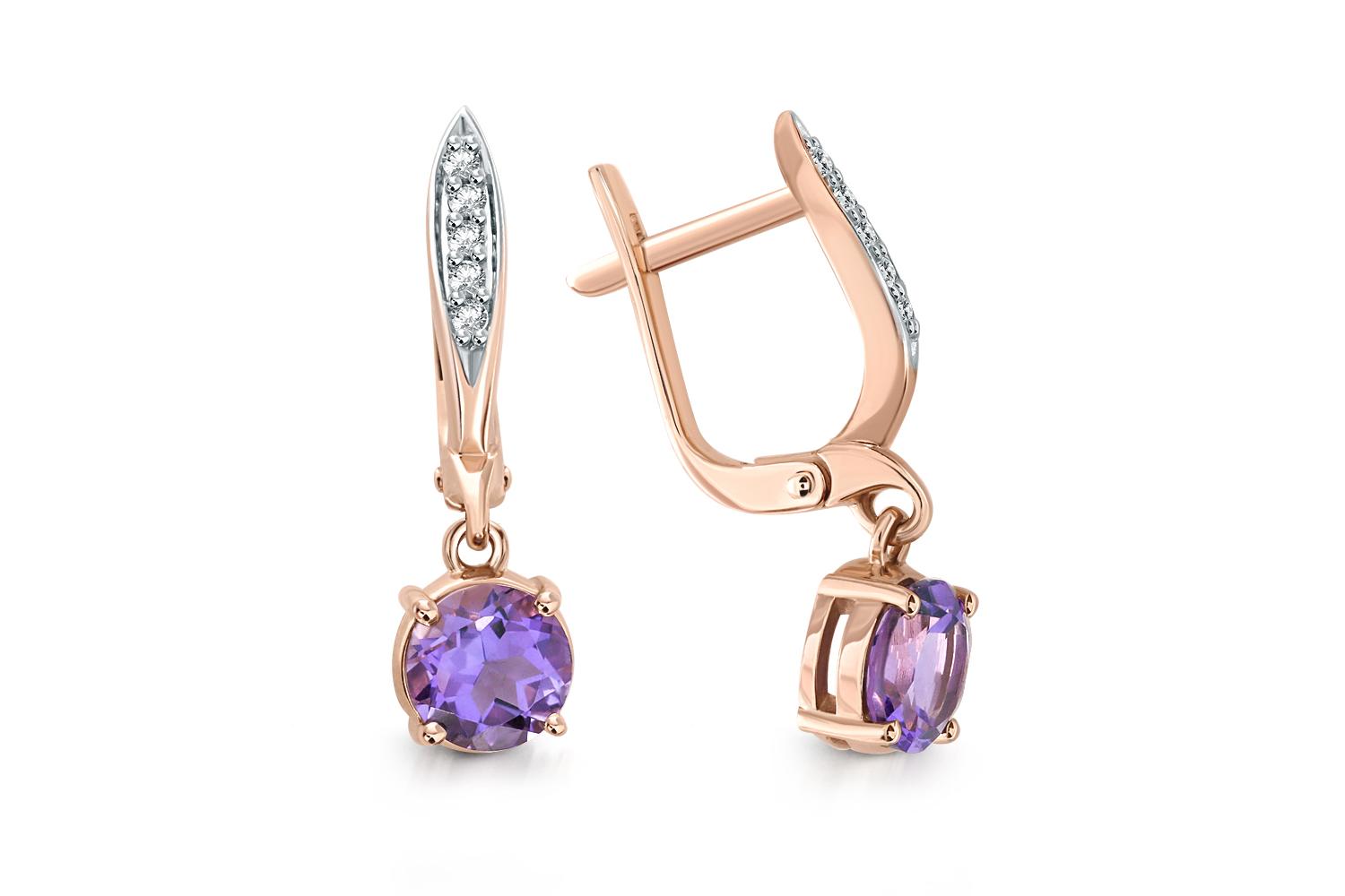 Закажите Серьги из красного золота с 2 аметистами и 10 фианитами с получением в Москве через курьерскую службу доставки напрямую с нашего производственного склада завода NEWGOLD!